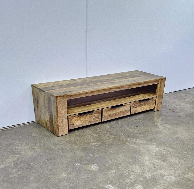 Design TV Möbel mit offenem Fach 170cm in massives Mangoholz, Holland mordern
