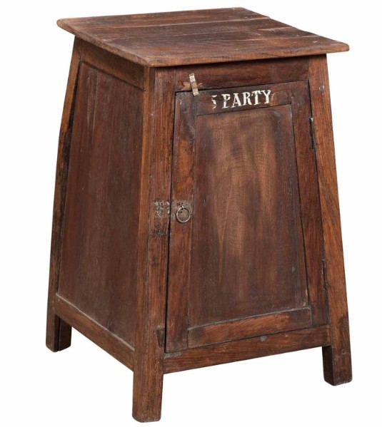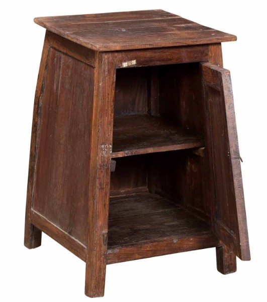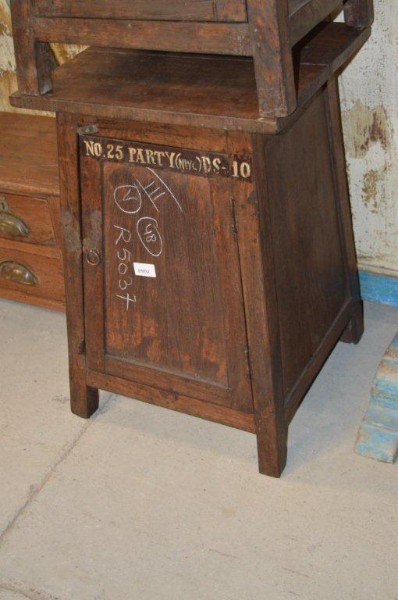 Shabby-chic Schrank mit ein Tür die Stauraum schafft. Diese teak Schrank ist farbig ind hat ein shabby Ausstrahlung. Schön zu kombinieren mit andere teak Möbel.