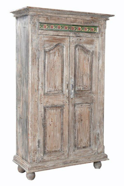 Schrank die ein shabby-chic-Stil hat. Der teak Schrank hat zwei große Türen. Diese Möbel ist schön für in ein Landhaus, in kombination mit Teak Möbel.